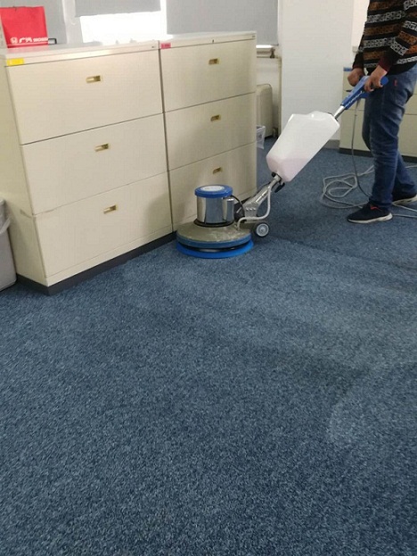 5、用中性清潔劑適量配合清洗機(jī)清洗地毯,并吸干。