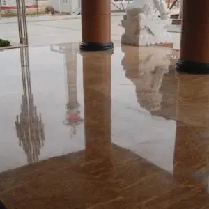 3.晶面硬化處理:石材在使用若干年后,表面會老化,嚴(yán)重影響美觀,晶面硬化處理就是經(jīng)過粉磨劑研磨,使化學(xué)藥劑與石材中的鈣成分發(fā)生化學(xué)反應(yīng),在石材表面形成一層新的晶化物質(zhì),防止污漬滲入石材內(nèi)層,增強(qiáng)抗磨性,使石材折射出天然的光澤,以達(dá)到一定的硬度和亮度。